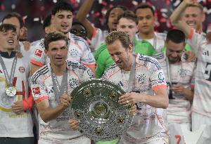 昨天,拜仁在慕尼黑玛利亚广场欢庆夺冠,大约有15500名球迷参加了活动。射手王哈里-凯恩将沙拉盘捧进市政厅,即将离队的俱乐部传奇穆勒则带着在甲虫餐厅庆功宴上顺走的陶瓷鹦鹉。女足奖杯由门将玛丽亚-路易莎-格罗斯展示,德国女足队长吉莉娅-格温则带着德国杯。